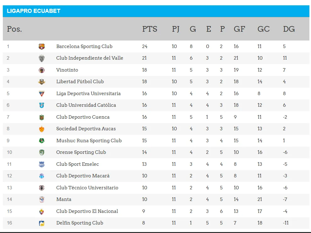 Emelec dio el golpe de la fecha y logró una victoria de visitante contra el líder Independiente del Valle y esto no solo le sirvió al club azul para sumar tres puntos importantes si no que también generó varios cambios en la tabla de posiciones de la LigaPro tras la fecha 11.