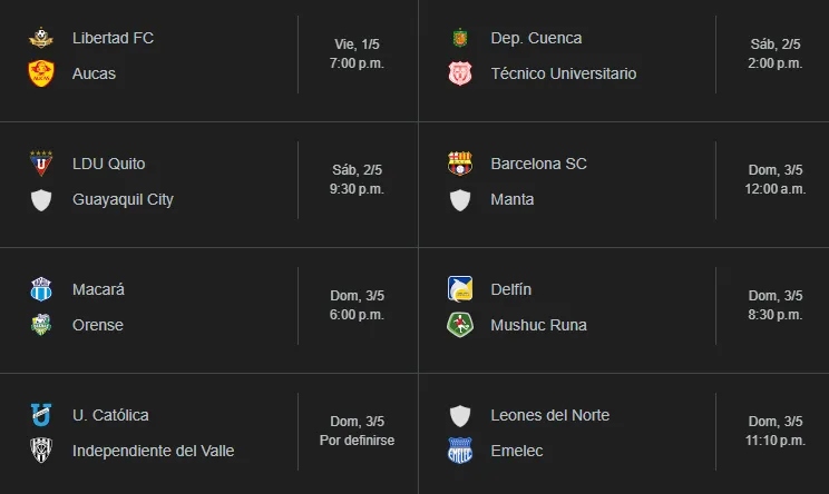La fecha 12 de la LigaPro se jugará de la siguiente manera: