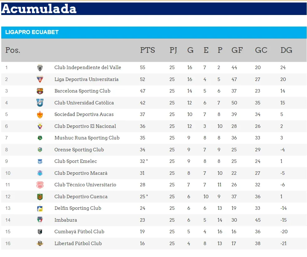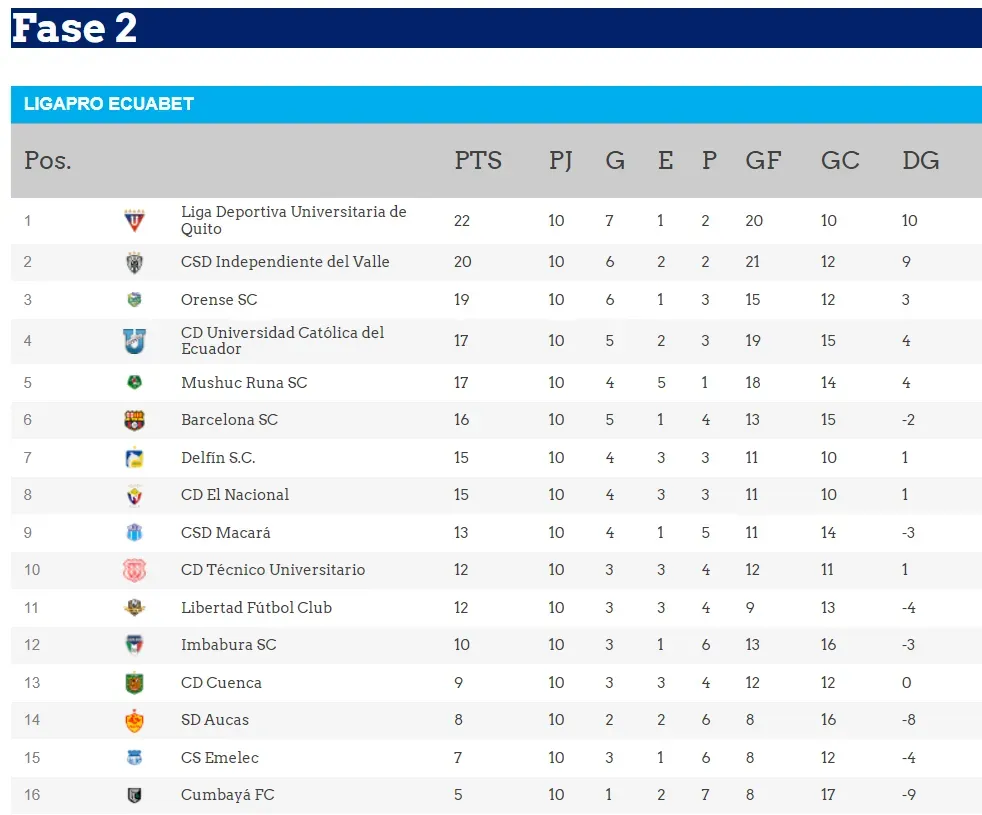 Los ‘albos’ ganaron su partido ante Técnico Universitario y son líderes con 22 puntos, le sigue Independiente del Valle con 20 unidades. Muy de cerca está Orense con 19 puntos conseguidos tras un agónico triunfo el viernes ante Libertad de Loja.