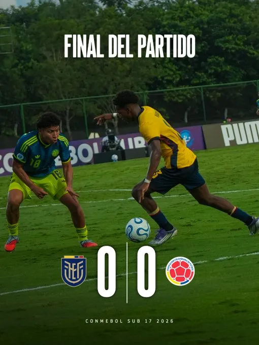 Ecuador empató 0-0 contra Colombia en un partido en el que jugó con diez elementos todo el segundo tiempo tras la expulsión de Nixon Ayoví. Ecuador así sumó 4 puntos y está líder en la tabla.