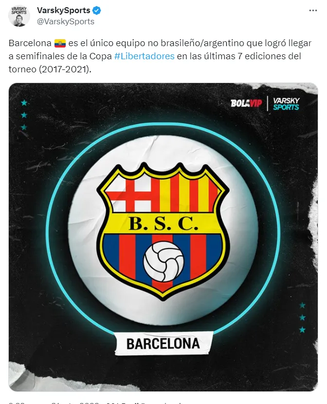 En los últimos años, desde el cambio de formato en 2017, Barcelona SC se ha convertido en el único equipo de la Copa Libertadores que ha estado en semifinales y no es de Brasil o Argentina.