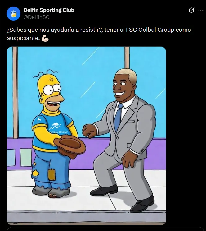 Todo arrancó como una broma entre Delfín SC a través de sus redes sociales luego de la denuncia del Manta al club ‘cetáceo’ por sus memes. Al final Felipao salió a defenderlos y Delfín respondió: “Queremos el auspicio de FSC Global Group como auspiciante”.
