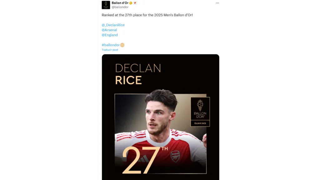 Declan Rice finalmente acabó en el puesto 27 de los nominados al Balón de Oro, solo superando a Van Dijk, Wirtz y OIisé. Rápidamente, los hinchas en las cuentas oficiales se acordaron de Moisés Caicedo, que no fue nominado pese a ganar el Mundial de Clubes.