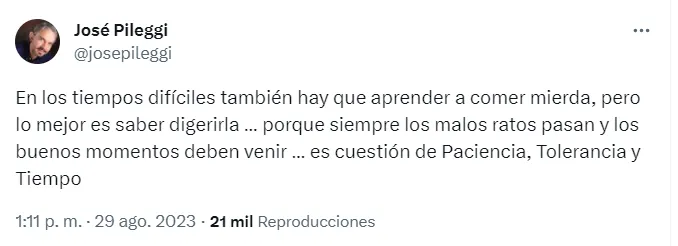 Mediante sus redes sociales, el presidente de Emelec, José Pileggi, respondió a las críticas que existen al equipo y afirmó que hay que esperar para que lleguen los buenos momentos.