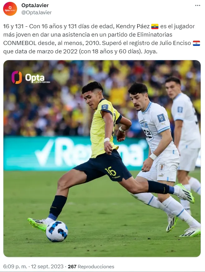 Por otro lado, Kendry Páez también se ganó el reconocimiento de todos los hinchas ecuatorianos y del mundo del fútbol. Páez se convirtió en el jugador más joven en debutar con una asistencia en un partido Conmebol.