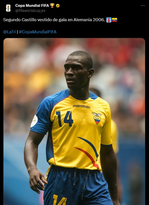 En esta ocasión, la FIFA en su cuenta en español destacó a Segundo Alejandro Castillo por su faceta como jugador. “Vestido de gala en Alemania 2006”, escribieron colgando una foto del DT cuando defendió la Selección de Ecuador en esa Copa del Mundo.