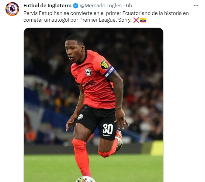 Con ese autogol, Pervis Estupiñán se convirtió en el primer ecuatoriano en la historia de la Premier League en anotar en propia puerta. El Brighton acabó siendo goleado 6×1.