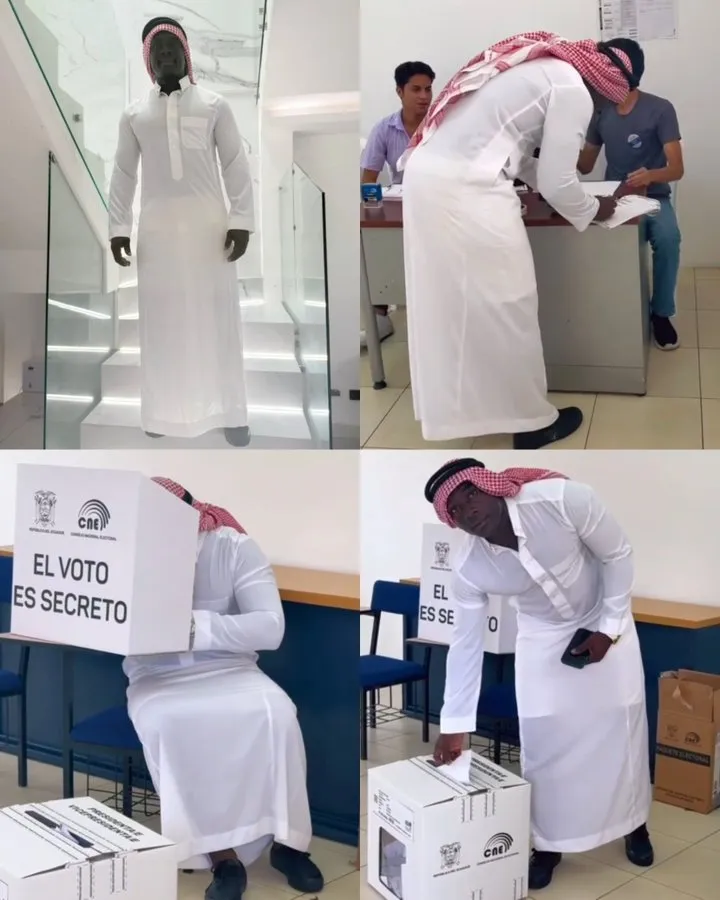 El entrenador de Barcelona SC se presentó con un atuendo de jeque árabe, rápidamente el video y las fotos del ex seleccionado ecuatoriano ejerciendo el derecho a voto se hizo viral en las redes sociales.