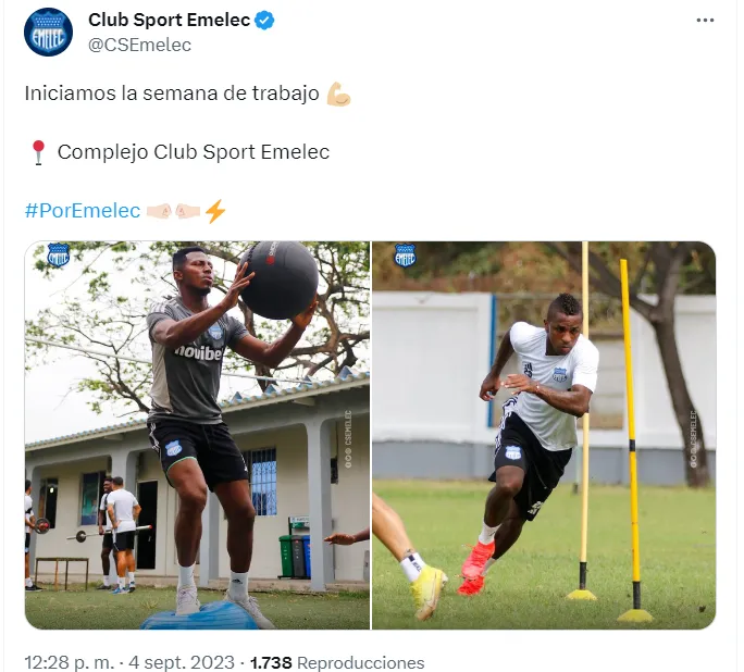 Mediante sus redes sociales, Emelec compartió dos fotos de su último entrenamiento, donde los aficionados finalmente pudieron ver a Miller Bolaños entrenando.
