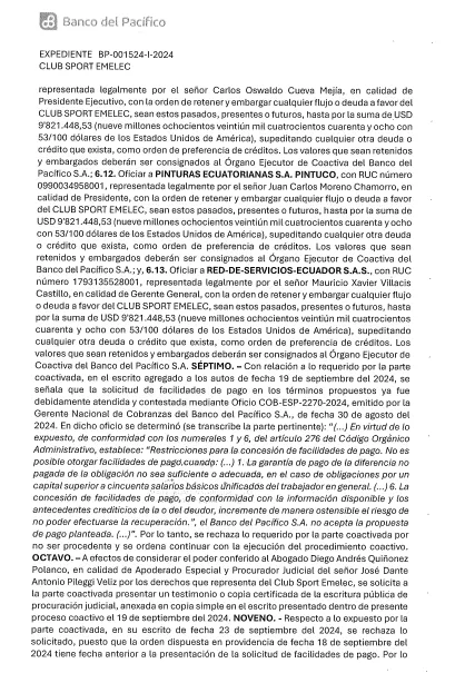 No es la única mala noticia de esta índole ya que ha dado la orden de embargar más de 700 bienes, entre los que están suites, palcos y estacionamientos del Estadio Capwell. Los documentos fueron dados a conocer por el periodista John Lester Idrovo.
