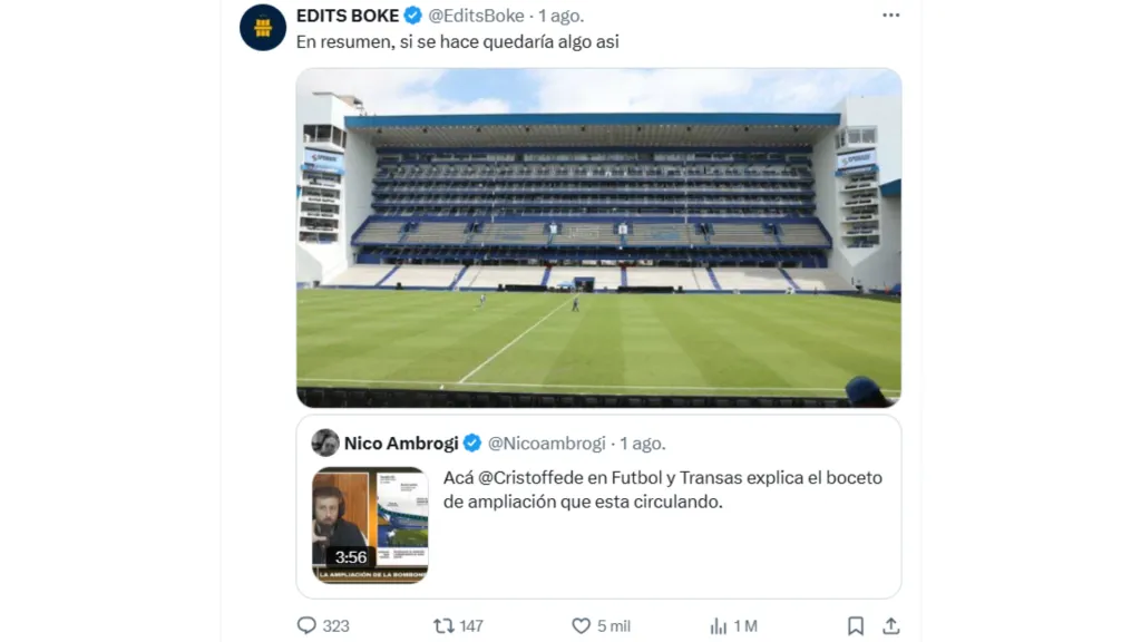 Los hinchas de Emelec en Ecuador también reaccionaron a este plan de Boca Juniors y sacaron pecho de su estadio. “Y queda hermoso”. “El mejor estadio del ecuador, simple”. “Es el estadio mas estético del país.”, fueron algunos de los comentarios de los aficionados.