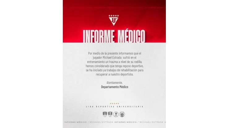Ahora Liga de Quito juega sin Michael Estrada, por una lesión. Viene siendo de sus mejores delanteros.