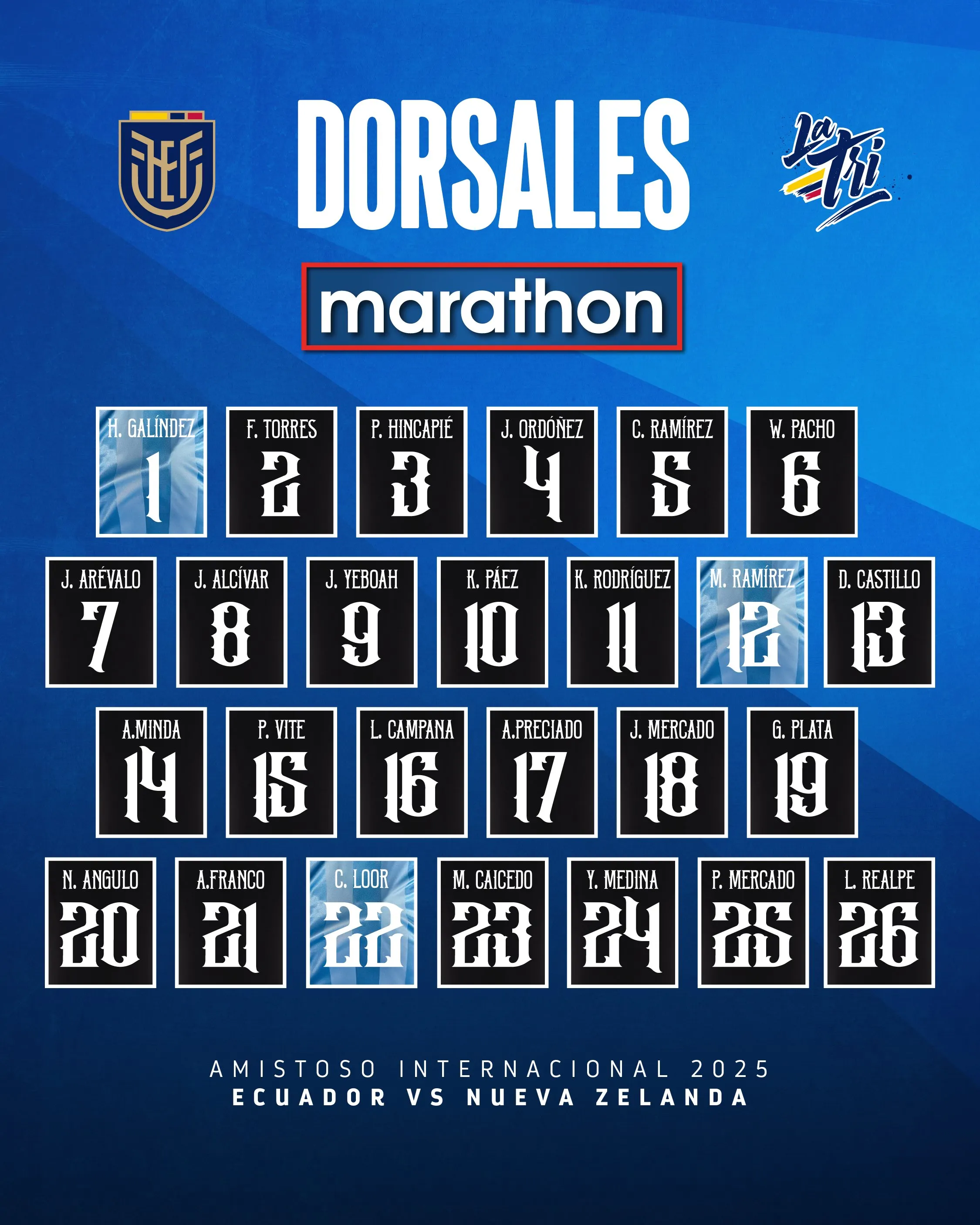 Así están los números de los jugadores de la Selección de Ecuador previo al partido contra Nueva Zelanda.