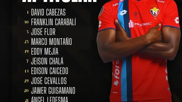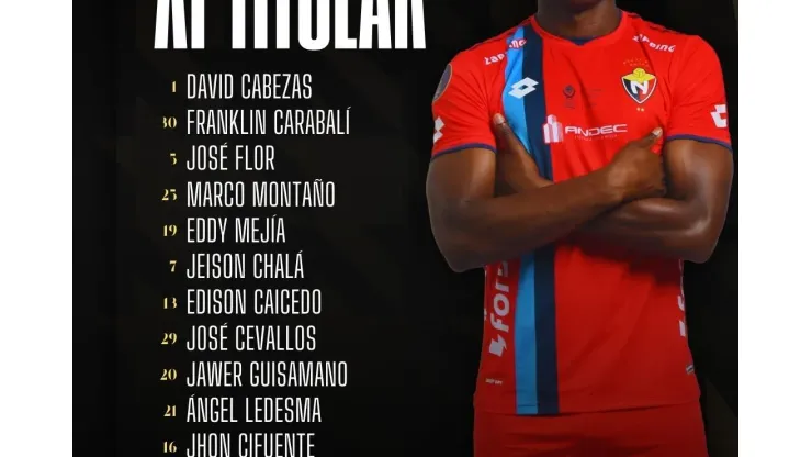 Así sale El Nacional a la Copa Libertadores: Cabezas, Carabalí, Flor, Montaño, Mejía, Chalá, Caicedo, Cevallos, Guisamano, Ledesma y Cifuente.
