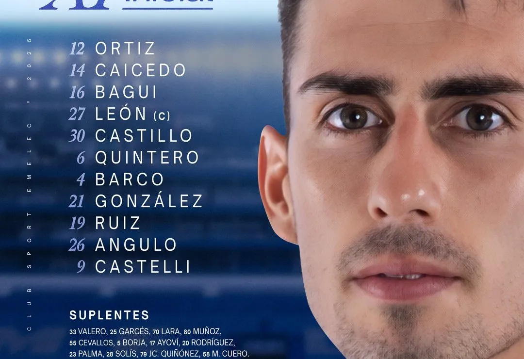 EL ONCE DE EMELEC: Así sale Emelec contra Deportivo Cuenca: Ortiz, Caicedo, Bagüí, León, Castillo, Quintero, Barco, González, Ruiz, 'Tin' Angulo y Facundo Castelli.