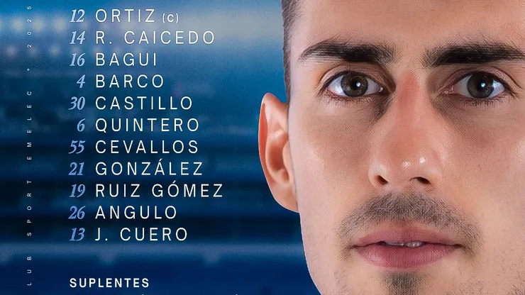 Este es el once de Emelec para enfrentar a Liga de Quito: Ortiz, Caicedo, Bagüí, Barco, Castillo, Quintero, Cevallos, González, Ruiz Gómez, Angulo, Cuero