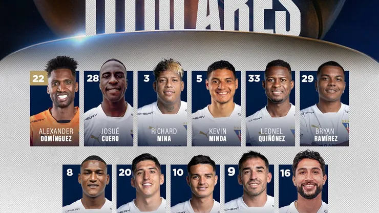 Así sale Liga de Quito: Domínguez, Cuero, Minda, Mina, Quiñónez, Ramírez, Gruezo, Cornejo, Alvarado, Alzugaray, Medina.