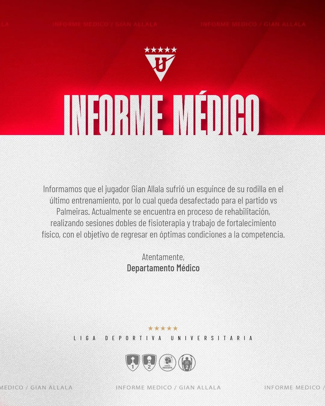 Para este encuentro, Liga de Quito perdió a Gonzalo Valle y Fernando Cornejo, el primero por lesión y el segundo por acumulación de tarjetas.
