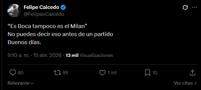 Felipe Caicedo también criticó lo dicho por Sergio Núñez y citó la frase de “Es Boca, no el Milan”, dicha por el delantero en la previa del partido. El ex goleador de la Tri agregó: “No puedes decir eso antes de un partido.