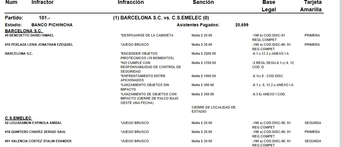 Se esperaba que la sanción fuera un poco mayor para Barcelona SC, no obstante, la LigaPro identificó solo estos incumplimientos y es por eso que su castigo es de 5.400 dólares. El club, seguramente, por taquilla y otros aspectos ingresó en el Clásico más de 50 mil dólares.