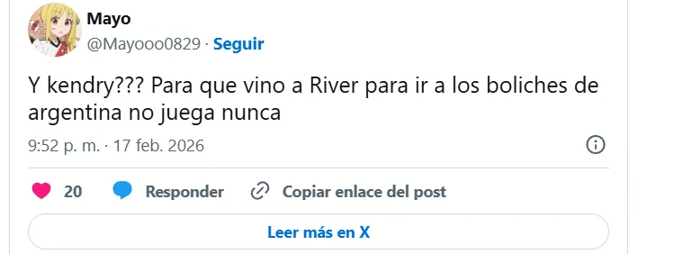 Kendry Páez sigue peleando por ganarse un lugar en River Plate, el escenario ideal era el partido de Copa Argentina pero el ecuatoriano quedó sin minutos. Los hinchas no fueron esquivos ante la falta de minutos del ex Chelsea por decisión de Marcelo Gallardo.