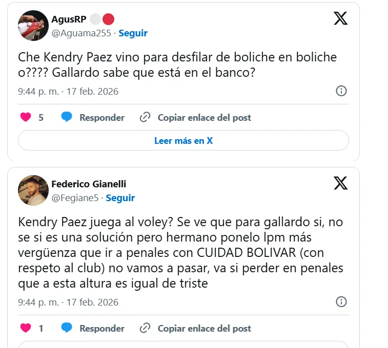 Los aficionados del propio equipo de la ‘Banda Roja’ no comprenden como ante un rival menor como el Club Ciudad de Bolívar, el DT dejó fuera al ecuatoriano. “Contra Argentinos, que es un rival más difícil y perdiendo lo puso, y ahora no, no se entiende”, escribió uno.