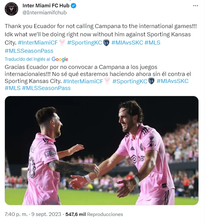 Los hinchas del Inter Miami se quedaron muy contentos con la ausencia de Leonardo Campana en la Selección de Ecuador, agradecieron que este no sea llamado para así vencer al Kansas City.