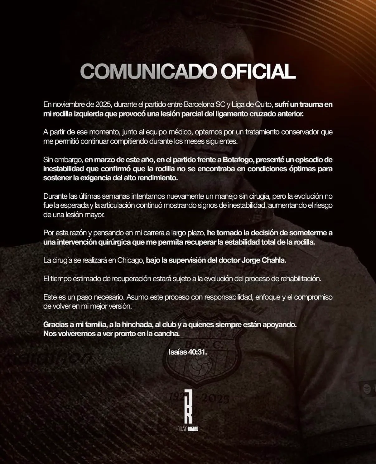 Uno de los jugadores que venía siendo baja en Barcelona desde varios partidos era Joao Rojas, había cierto hermetismo en el estado del extremo ecuatoriano pero ahora fue respondido todo.