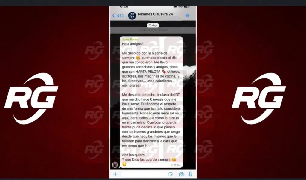 Joao Rojas también fue noticia en México por el mensaje de despedida a sus compañeros, filtrado según el periodista Willie González, en el que ataca al DT “por decirle de forma humillante hace 6 meses” que se tenía que ir. “Te lo digo en el grupo, con los huevos que te faltaron a ti para decirme que me tenía que ir”.
