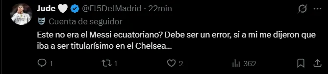 Hinchas del Chelsea también celebraron la elección ya que confían que con tiempo de juego pueda recuperarse y volver al nivel que lo llevó a la Selección de Ecuador.