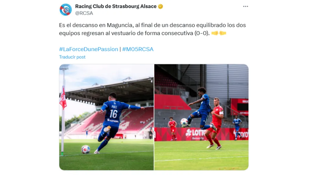 Racing de Estrasburgo compartió que jugó 2 partidos amistosos en esta jornada, uno con público, y otro a puertas cerradas. En el encuentro sin aficionados, fue donde Kendry Páez empezó como titular ante el Mainz. Al final, su equipo acabó perdiendo.