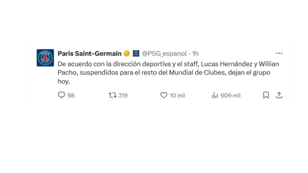 En medio de toda esta polémica, el PSG sorprendió aún más con una contundente decisión y drástica contra el jugador ecuatoriano. El equipo confirmó que el tricolor y Lucas Hernández abandonarán la concentración del club y no seguirán con el grupo.
