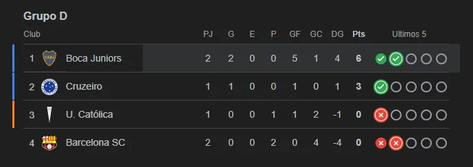 Si Cruzeiro gana, estirará ya a 6 puntos de ventaja sobre Barcelona, lo mismo que Boca quienes también ganaron su segundo partido. El siguiente partido será otra vez en Guayaquil contra U. Católica de Chile.