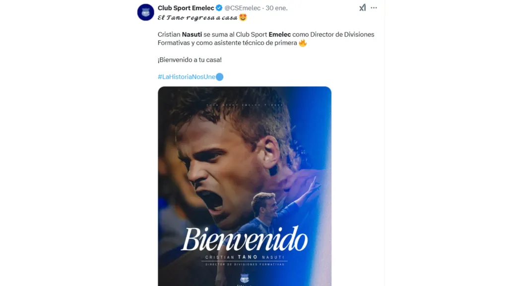 Cristian Nasuti y Óscar Bagüí son dos grandes leyendas de Emelec, que ahora regresaron al club para trabajar en formativas. Pese a que la hinchada se mostró contenta con esta decisión, un candidato a la presidencia del club avisó que no continuará con ellos.