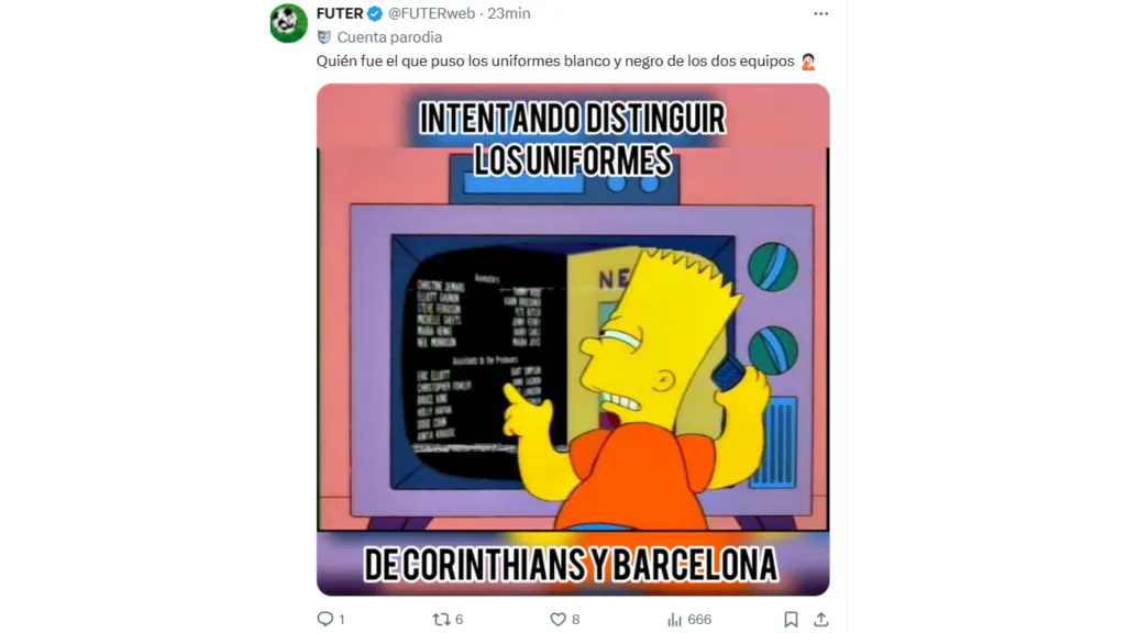 Las redes sociales estuvieron muy pendientes del partido entre Corinthians y Barcelona SC por la Copa Libertadores. En esta ocasión el punto central de atención fue la poca visibilidad que daban los uniformes de ambos equipos. Asimismo, el atuendo de Segundo Castillo no pasó desapercibido.