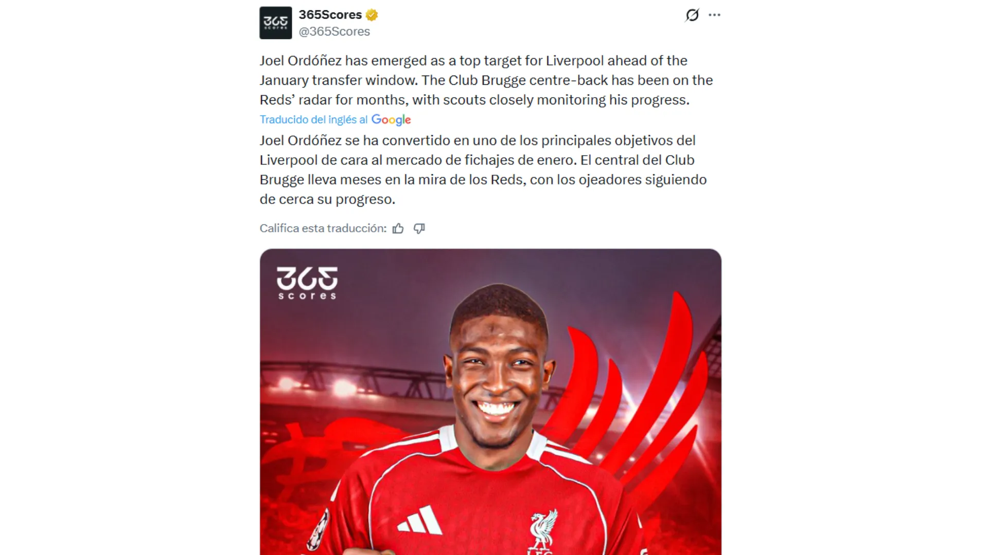 De acuerdo a la información de 365 Scores, y a lo que adelantó Bolavip hace pocas semanas, Joel Ordóñez se convirtió en prioridad del mercado de fichajes para Liverpool. El central ecuatoriano podría llegar en este mismo mes de enero a la Premier League.