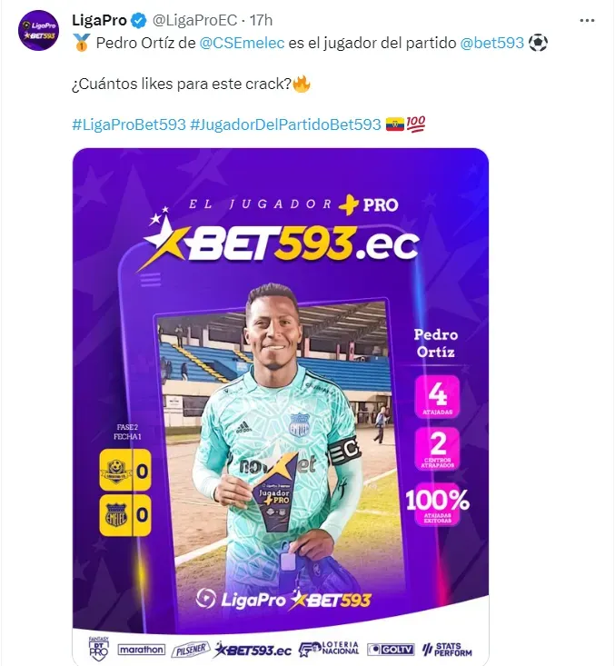 El mejor jugador de Emelec en este 2023 muy malo para el equipo azul ha sido el arquero, Pedro Ortiz. El número 12 del ‘Bombillo’ ha destacado en la gran mayoría de los encuentros.
