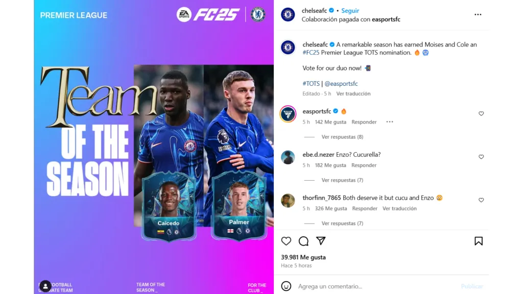 En medio de todos los rumores Chelsea dejó un claro mensaje en redes sociales de cuánto les importa el jugador ecuatoriano. El club pidió que lo voten para que entre en el equipo del año en el EA FC25, pero en su publicación puso primero a Moisés Caicedo antes que Cole Palmer.
