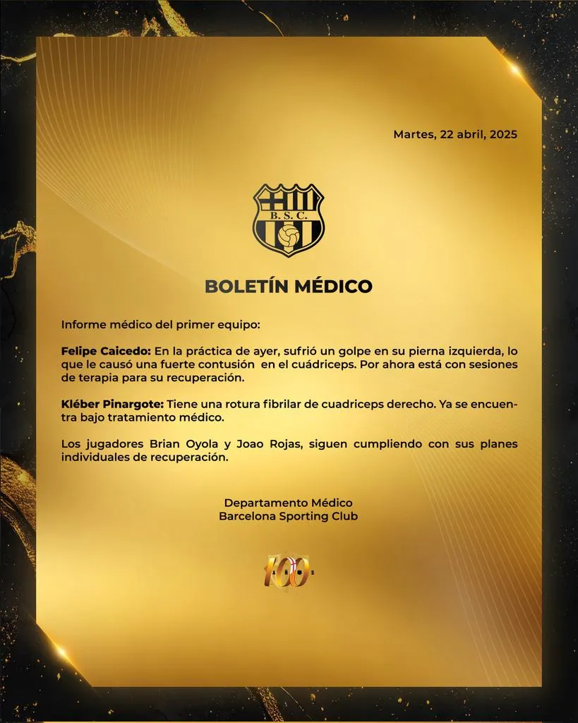 Este martes 22 de abril de 2025 Barcelona SC juega en la Copa Libertadores contra Universitario de Deportes. Los amarillos ya confirmaron los jugadores convocados para el partido contra el equipo peruano, pero tendrán la baja de uno de sus fichajes estelares.