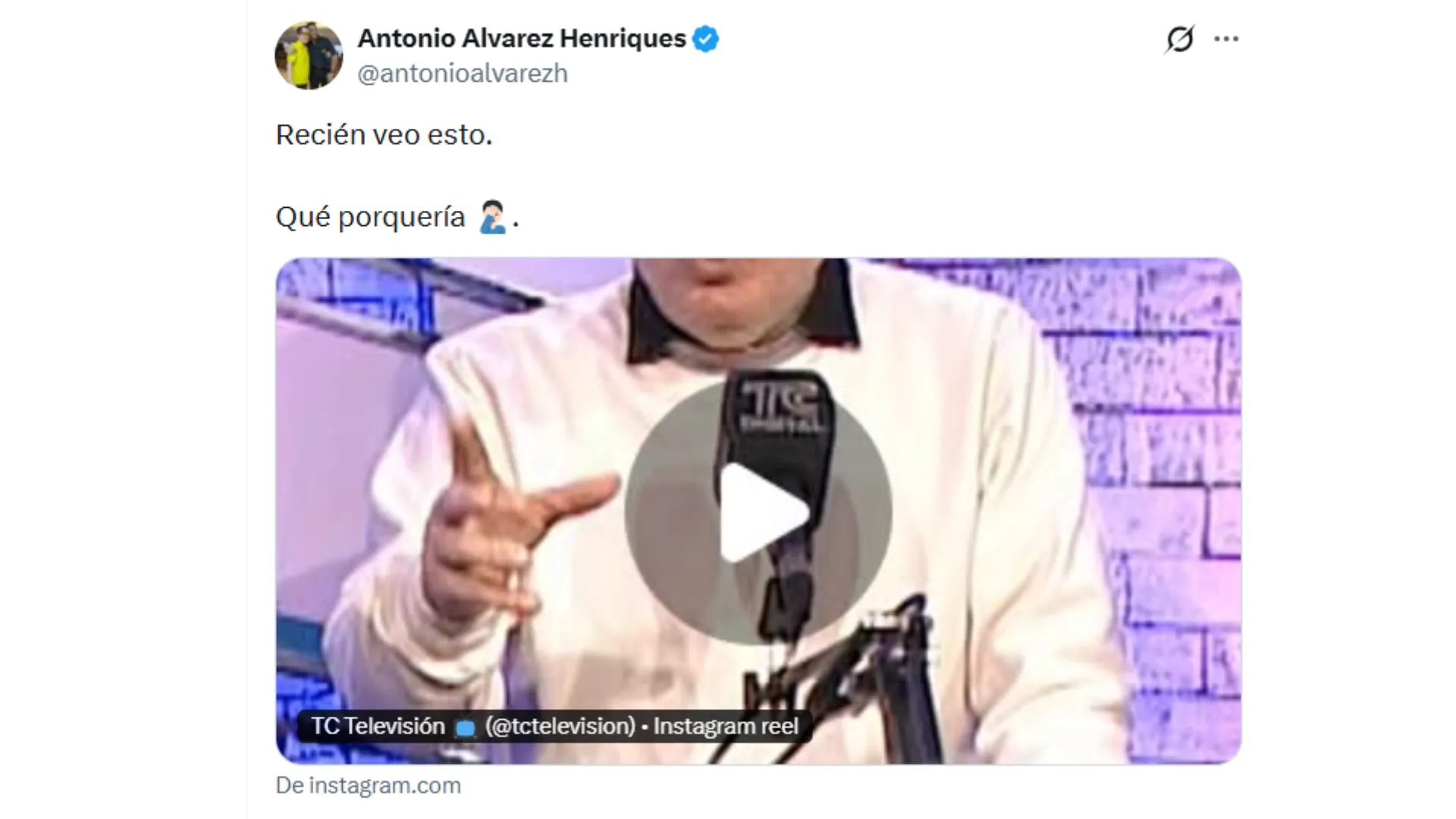 Ante estas fuertes palabras, llegaron aún unas más fuertes del presidente Antonio Álvarez, que respondió en su cuenta oficial de X con las siguientes palabras: “Recién veo esto. Que porquería“, escribió el directivo generando muchas reacciones.