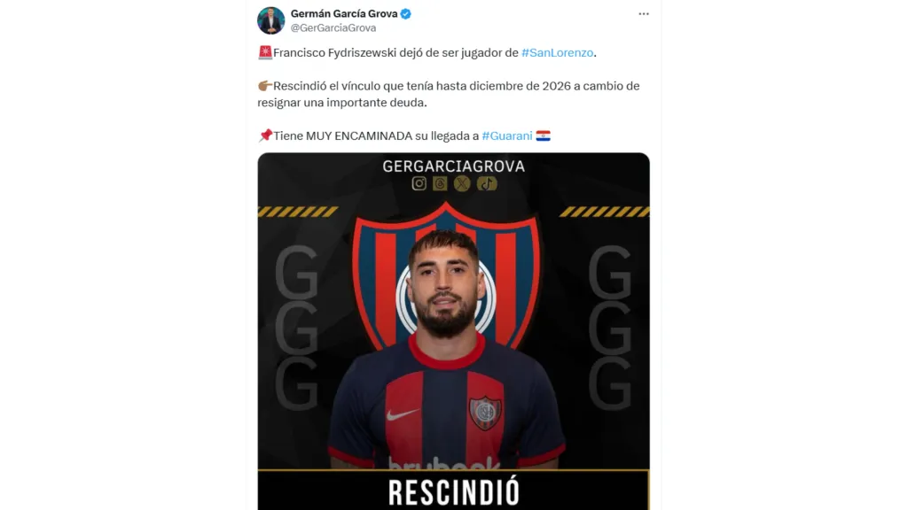 Según reveló Germán García Fyrdiszewski decidió dar por finalizado su contrato con San Lorenzo a cambio de perdonar una importante deuda. El delantero era muy relacionado con Universitario, sin embargo, ahora tendría otra oferta para seguir su carrera.