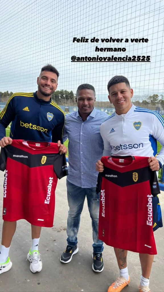Estando en Argentina también para apoyar a la selección de Ecuador, el extremo ecuatoriano retirado Antonio Valencia visitó a la delegación de Argentina y aprovechó para visitar a dos de sus jugadores ex compañeros en el Manchester United de Inglaterra.
