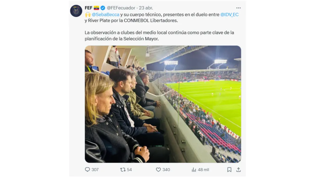 Sebastián Beccacece sigue preparando la nueva convocatoria de la Selección de Ecuador y en esta semana de Copa Libertadores el entrenador seguirá de cerca este partido. El DT de ‘La Tri’ buscará completar la tan polémica lista con algunos jugadores de la LigaPro.