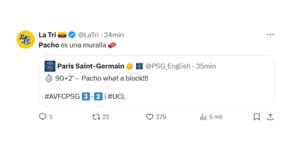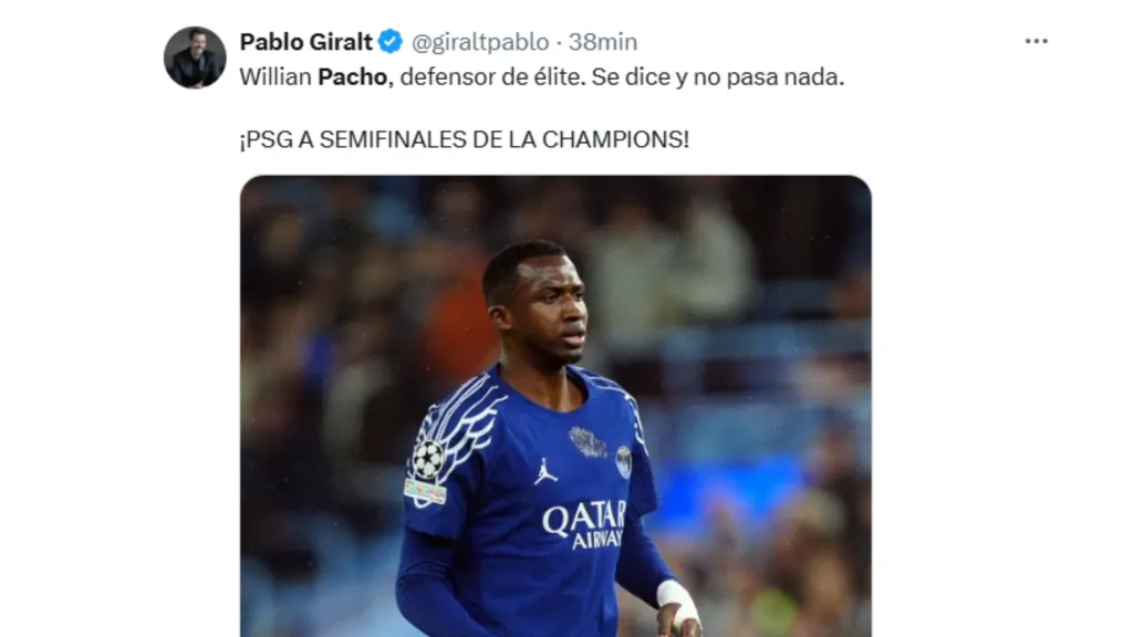 El PSG consiguió su clasificación a las semifinales de la Champions League, tras vencer en la serie global al Aston Villa. La vuelta en Inglaterra tuvo de todo y a William Pacho como protagonista. El central ecuatoriano se vio envuelto en un autogol y en una salvada que metió al PSG en semifinales.