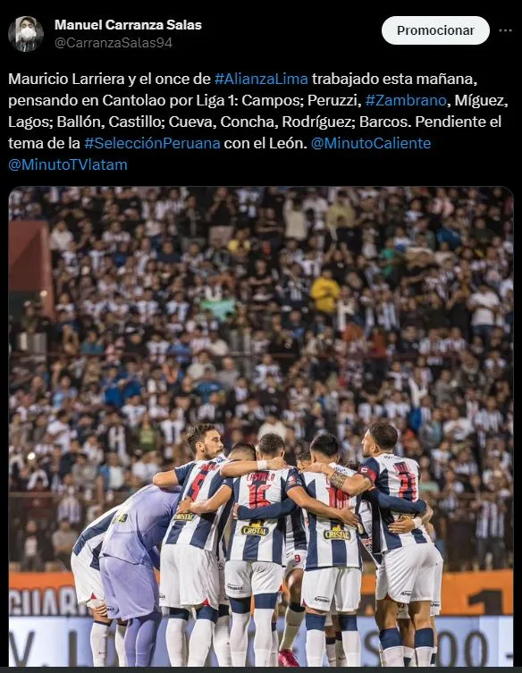 Mauricio Larriera podrá colocar un once diferente en Alianza Lima, eso lo trabajaron esta mañana muy temprano, pensando en Cantolao por Liga 1. Los íntimos de La Victoria saben que dependen mucho de este resultado, la idea principal es hacer las cosas bien, y conseguir una victoria.
