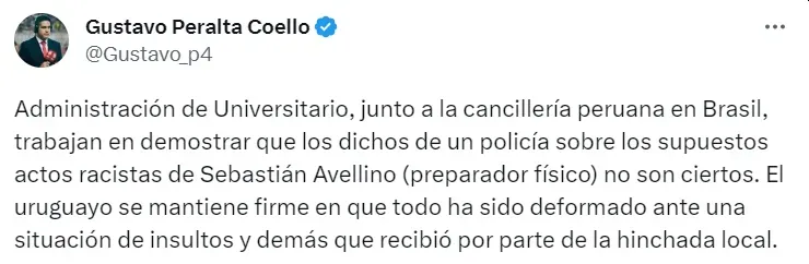 En una jornada inesperada para Universitario de Deportes, el preparador físico Sebastián Avellino fue acusado de racismo y detenido por la policía de Sao Paulo.
