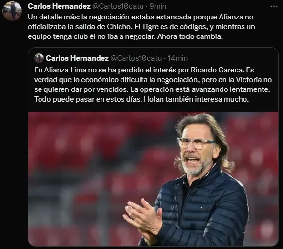 El periodista deportivo del Diario Líbero, revela que Alianza Lima, tiene en mente solo un frente. El cual parece cercano: “Un detalle más: la negociación estaba estancada porque Alianza no oficializaba la salida de Chicho. El Tigre es de códigos, y mientras un equipo tenga club, él no iba a negociar. Ahora todo cambia”.