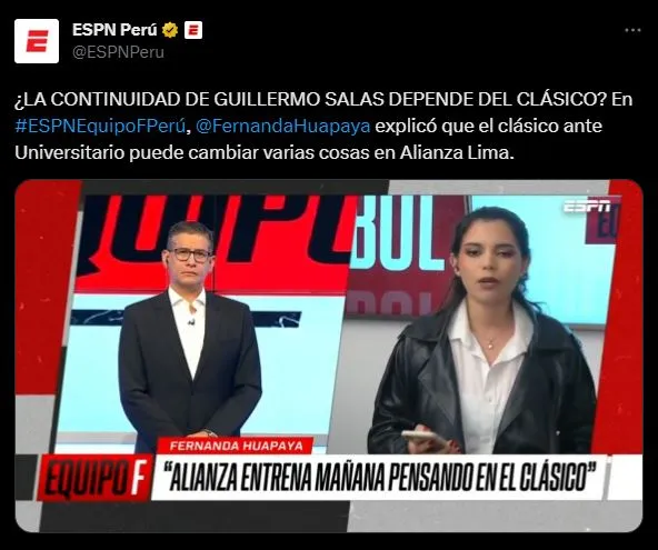 En el último programa de ESPN Perú, habló la periodista Fernanda Huapaya sobre este aspecto. Con una antesala muy descriptiva: “Desde Alianza Lima, sin duda alguna, se ha generado una preocupación porque no se ha ganado contra Sporting Cristal, ahora perdió con Sport Boys”.