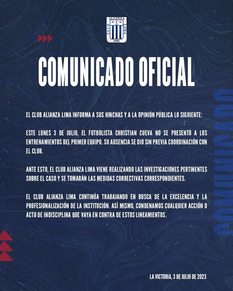 Motivo a eso, es que los íntimos han comenzado un proceso de investigación contra el volante peruano, según el comunicado publicado por ellos.