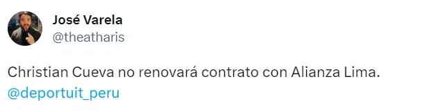 “Christian Cueva no renovará contrato con Alianza Lima”, esto lo hizo conocer el periodista José Varela a través de sus redes sociales.